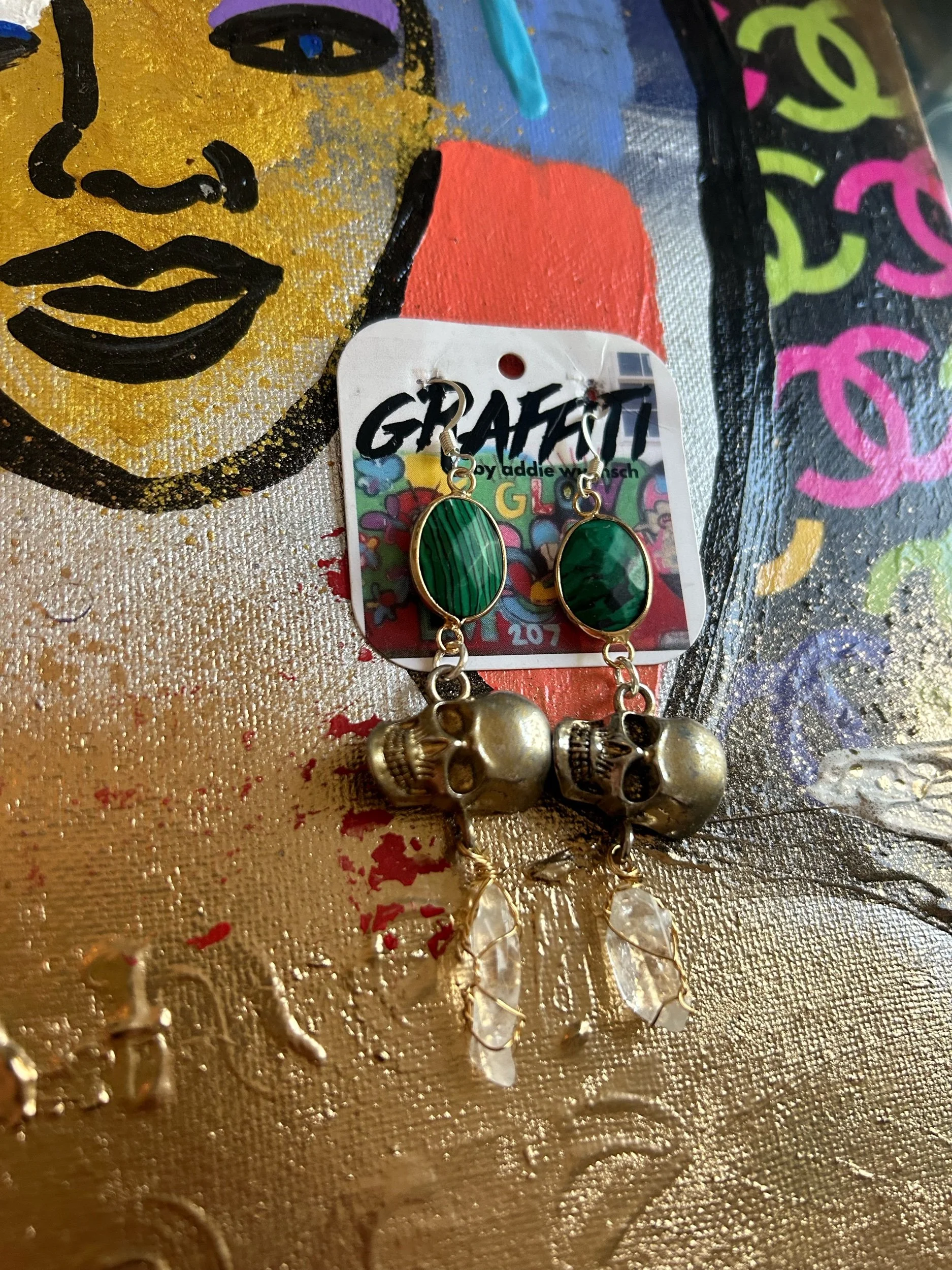 BUY NOW Categories: Select a Category Shirts Jewelry Purses Prints Art Shirts | Jewelry | Purses | Prints | Art | Kate Spade Graffiti Wallet $60.00 Radiant Frida graffiti clutch purse $60.00 Leather Coach Graffiti Wallet $80.00 Acsend Graffiti Wallet $50.00 Antique Doll Fist Necklace with Quartz $40.00 Hausa Squeaking Rubber Chicken Earrings $20.00 Spray Painted Skull, Malachite and Evil Eye Earrings $30.00 Spray Painted Skull Malachite and Quartz Earrings $30.00 Evil Eye Malachite and Quartz Earrings $30.00 Amethyst Eye Earrings $24.00 Amethyst Weed Earrings $20.00 Turquoise Amethyst and Weed Earrings $25.00 Dragonfly Amethyst and Quartz Earrings $30.00 Hamsa Quartz Earrings $15.00 Boob and Weed Earrings with Quartz $25.00 Hamsa Buddha Prayer and Meditation Necklace $48.00 Working Compass Trinket Necklace $48.00 Ganesha Skull Icicle Quartz Necklace $40.00 Skull Aura Quartz Necklace $24.00 Skull Weed Necklace $28.00 Empath Bleeding Chanel Graffiti Purse Italian Leather $100.00 Freeman’s Alley Graffiti Tote $100.00 Hamsa evil eye weed earrings $25.00 Hamsa crystal feather earrings $28.00 Graffiti boobs earrings $25.00 Spray painted graffiti hamsa fairy wing earrings $25.00 Spray painted graffiti skull earrings with evil eye and quartz $25.00 Evil Eye Quartz Earrings $25.00 BROOKLYN FARTS DISTRICT TSHIRT MEDIUM $40.00 BROOKLYN FARTS DISTRICT TSHIRT XTRALARGE $40.00 BROOKLYN FARTS DISTRICT TSHIRT LARGE $40.00