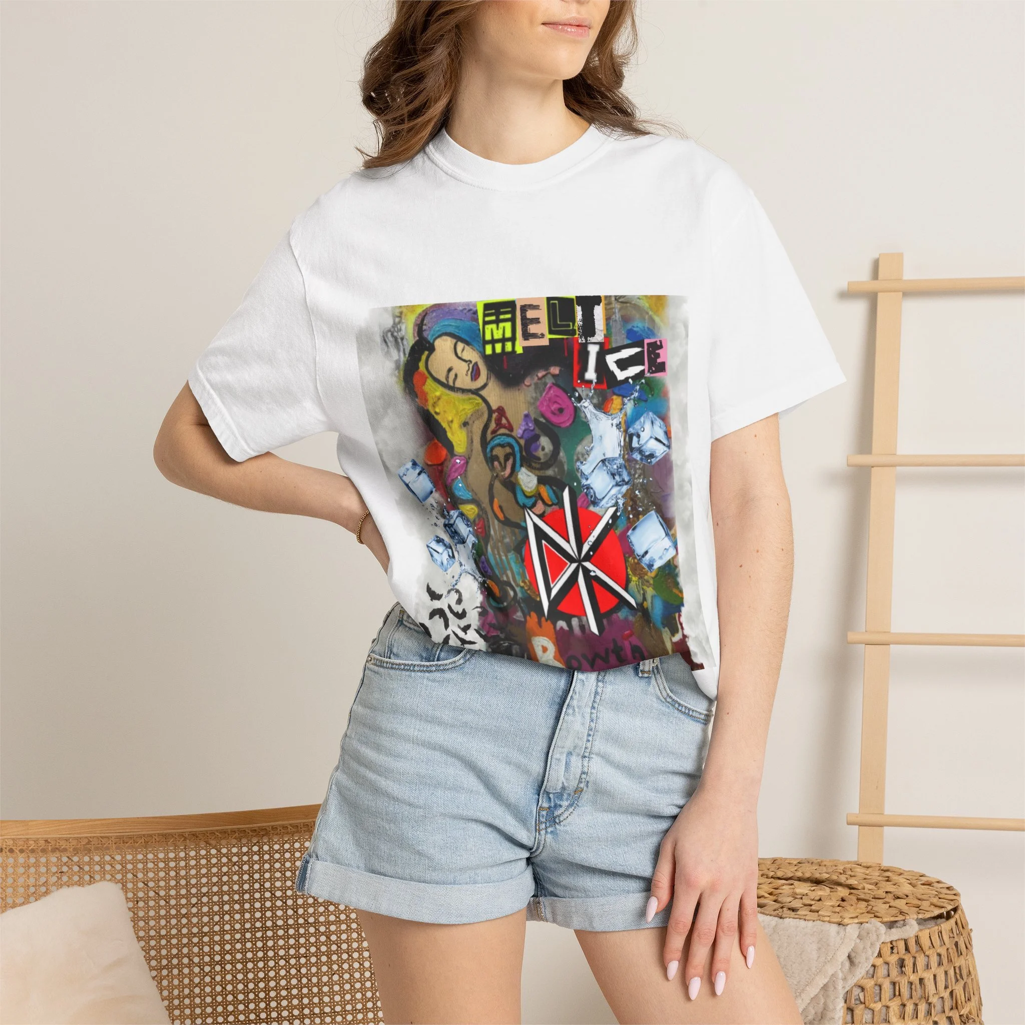 This heavyweight garment-dyed tee brings gritty street-art energy to everyday wear. The front features a layered graffiti collage — bold stencil marks, spray-can textures, and a striking red emblem — that feels like a snapshot from an urban wall. The relaxed, roomy cut lets the graphic breathe while the soft, washed-down color and substantial 6.1 oz cotton give it a lived-in comfort straight away. Wear it to skate parks, late-night shows, or when you want an honest, art-forward statement in your rotation.