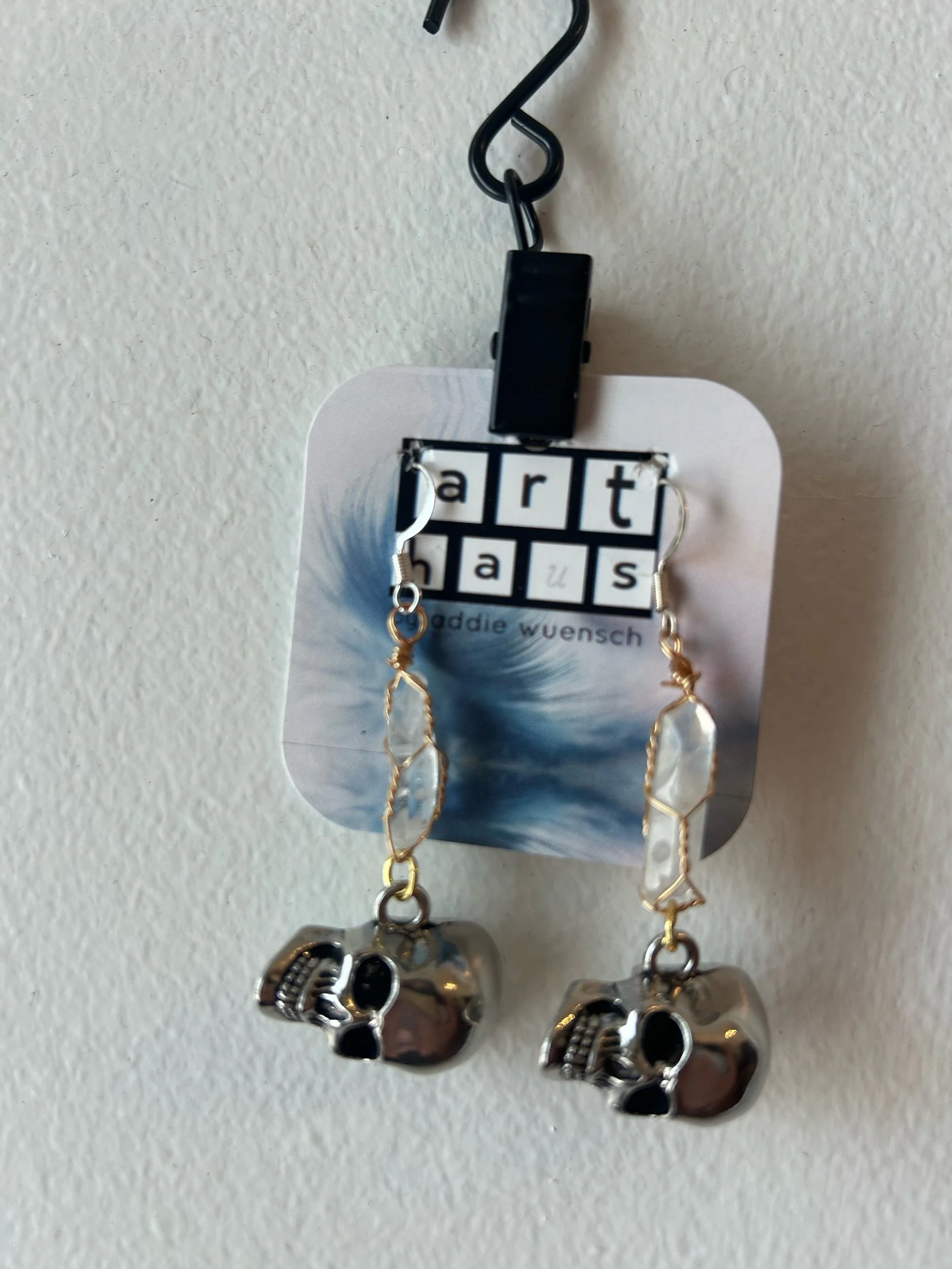 shop jewelry and graffiti purses › Skull and Quartz Earrings Image 1 of 1 Skull and Quartz Earrings $25.00 Add To Cart Added!