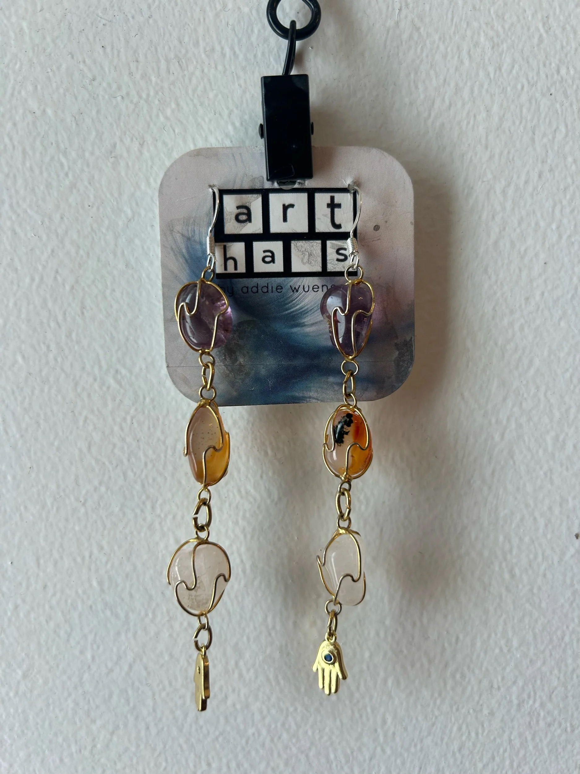 shop jewelry and graffiti purses › Hamsa Gemstone Earrings Image 1 of 1 Hamsa Gemstone Earrings $30.00 Add To Cart Added!